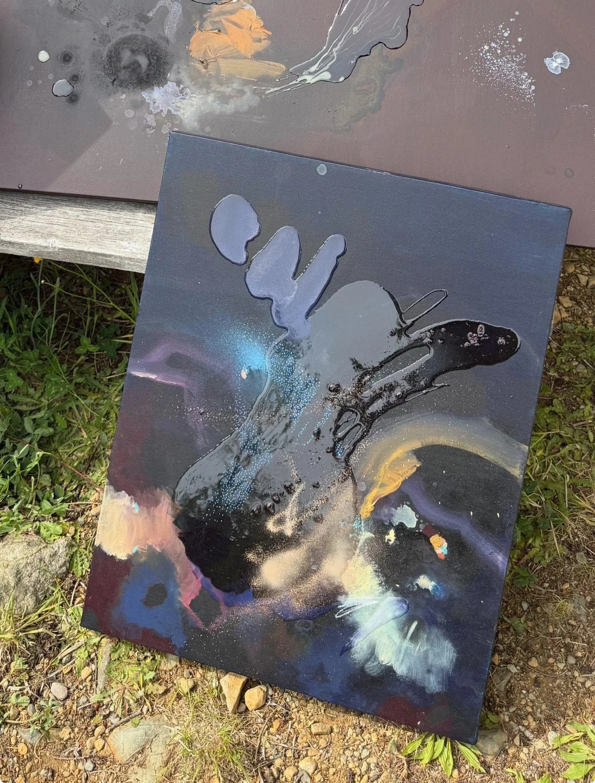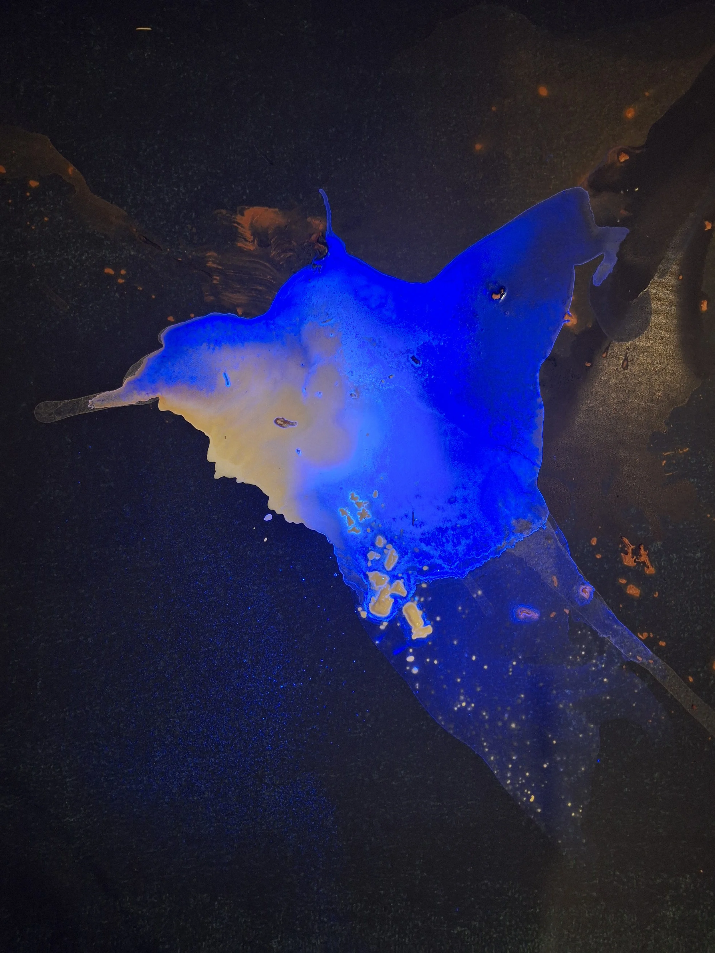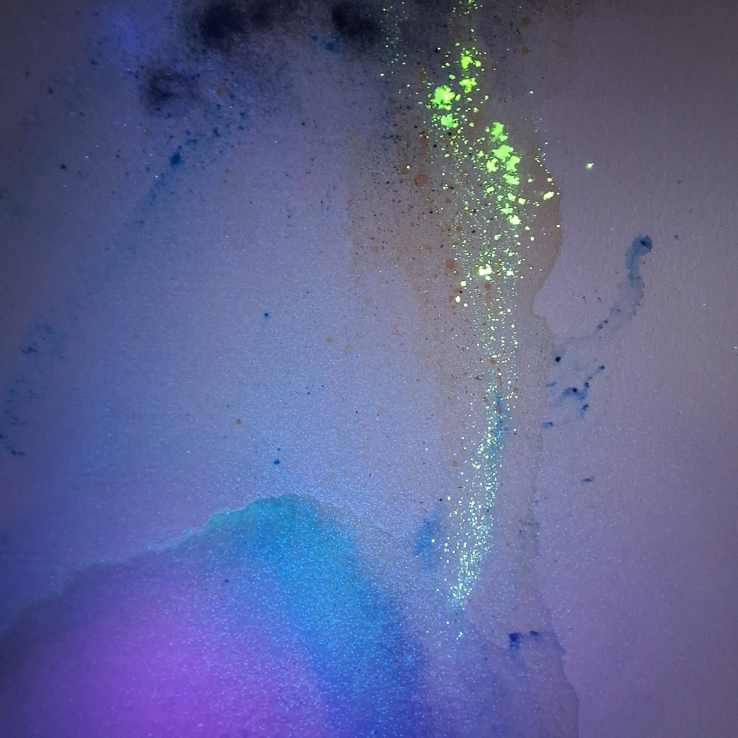 Each of these paintings has 2 versions - a daytime and a night time version. The night version lights up a whole other aspect of the painting, pointing the viewer to the light that exists underneath all matter - the quantum field.